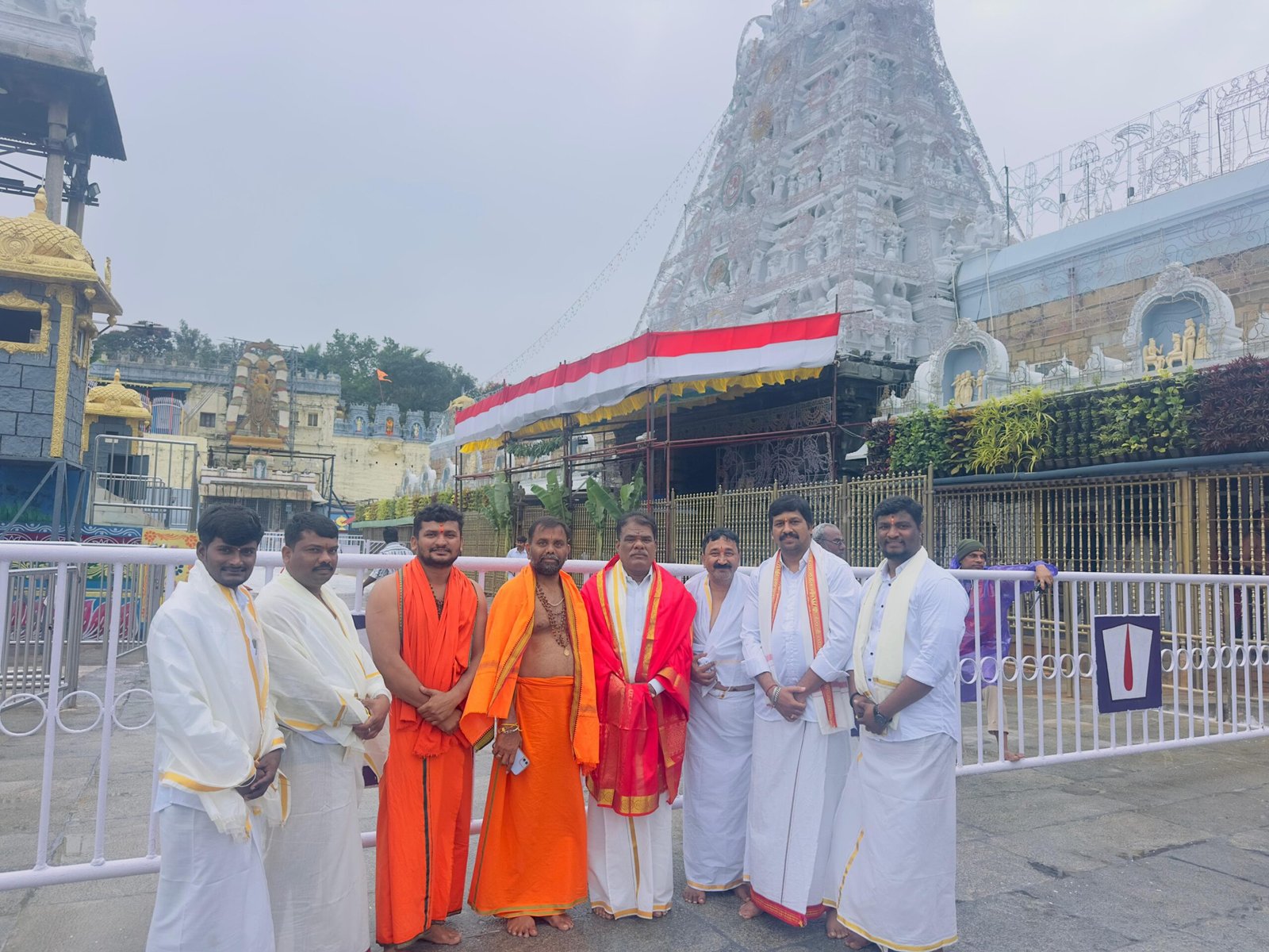 ఉదయం కలియుగ ప్రత్యక్ష దైవం శ్రీ తిరుమల తిరుపతి వెంకటేశ్వర స్వామి వారిని దర్శించుకొని,రాష్ట్ర ప్రజలంతా సుఖసంతోషాలతో జీవించాలని,రాష్ట్రం అభివృద్ధిలో ముందుకు సాగాలని మెక్కులు చెల్లించుకున్న తెలంగాణ రాష్ట్ర ఎస్సీ,ఎస్టీ కమిషన్ చైర్మన్ బక్కి వెంకటయ్య అనంతరం ఆలయ వేద పండితులచే ఆశీర్వాద్ మండపంలో కూర్చోబెట్టి ఆశీర్వాచన చేసి,స్వామి వారి తీర్థప్రసాదాలు అందజేసి ఆశీర్వదించారు.ఈ సందర్భంలో చైర్మన్ వెంకటయ్య తో పాటు కమిషన్ సభ్యులు నెనావత్ రాంబాబు నాయక్,సంగారెడ్డి జిల్లా ది డిస్టిక్ కో-ఆపరేటివ్ సెంట్రల్ బ్యాంక్ సీఈవో శ్రీనివాస్, పిఎ శ్రీధర్,శ్రీశైలం,సాయి కుమార్,సంజీవ్,శక్రు,సాయి,తదితరులు ఉన్నారు.
