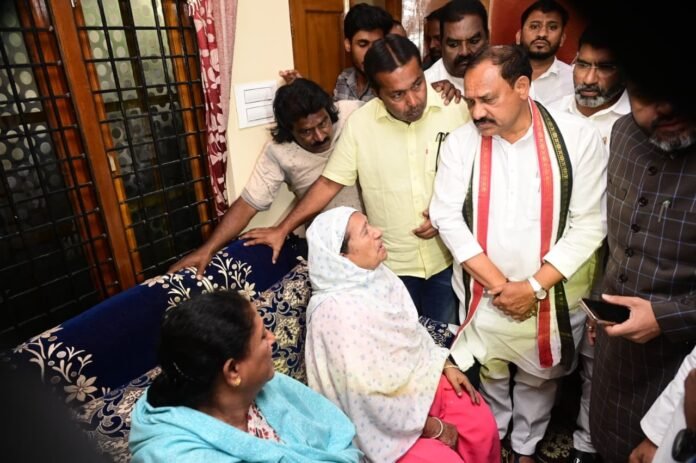 సౌదీ అరేబియాలో జరిగిన దారుణ బస్సు ప్రమాదంలో మృతి చెందిన తెలంగాణ వాసుల కుటుంబాలను టీపీసీసీ అధ్యక్షులు మహేష్ కుమార్ గౌడ్ పరామర్శించారు. అడిక్ మెట్ అచ్యుత్ మార్గ్ ప్రాంతంలో పర్యటించిన ఆయన, కుటుంబ సభ్యులను ధైర్యం చెప్పి వారి సమస్యలను తెలుసుకున్నారు. ఈ కార్యక్రమంలో ఎంపీ అనిల్ కుమార్ యాదవ్, ఏఐసీసీ కార్యదర్శి సంపంత్ కుమార్, నాంపల్లి ఇన్ఛార్జ్ ఫిరోజ్ ఖాన్ తదితరులు పాల్గొన్నారు. బాధిత కుటుంబాలకు ప్రభుత్వం అన్ని విధాలుగా అండగా ఉంటుందని కాంగ్రెస్ తరఫున మహేష్ గౌడ్ భరోసా ఇచ్చారు. మృతదేహాల రప్పింపు, ఆర్థిక సహాయం, కుటుంబ సభ్యులకు అవసరమైన మద్దతు అందించే దిశగా కాంగ్రెస్ పార్టీ తరఫున అవసరమైన చర్యలు తీసుకుంటామని ఆయన స్పష్టం చేశారు. ఈ విషాద సమయంలో బాధితులకు ప్రభుత్వం మరియు పార్టీ కలసికట్టుగా సహాయం చేస్తుందని నాయకులు హామీ ఇచ్చారు.