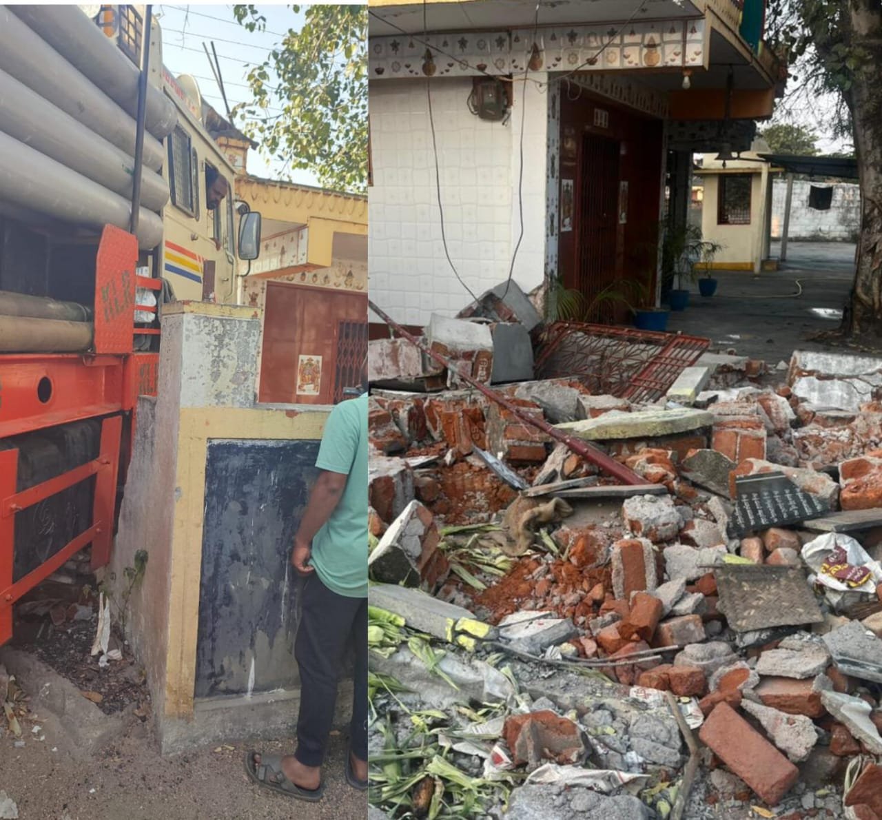 అతివేగంతో హనుమాన్ ఆలయంలోకి దూసుకెళ్లిన బోర్వెల్ వాహనం