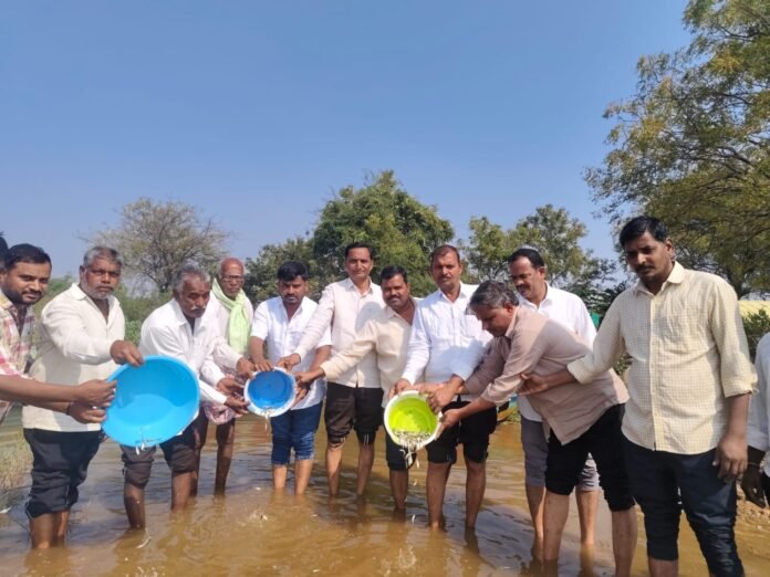 మత్స్యకారులు ఆర్థికంగా ఎదగాలి : మెలిగిరిపేట చెరువులో చేప పిల్లల విడుదల