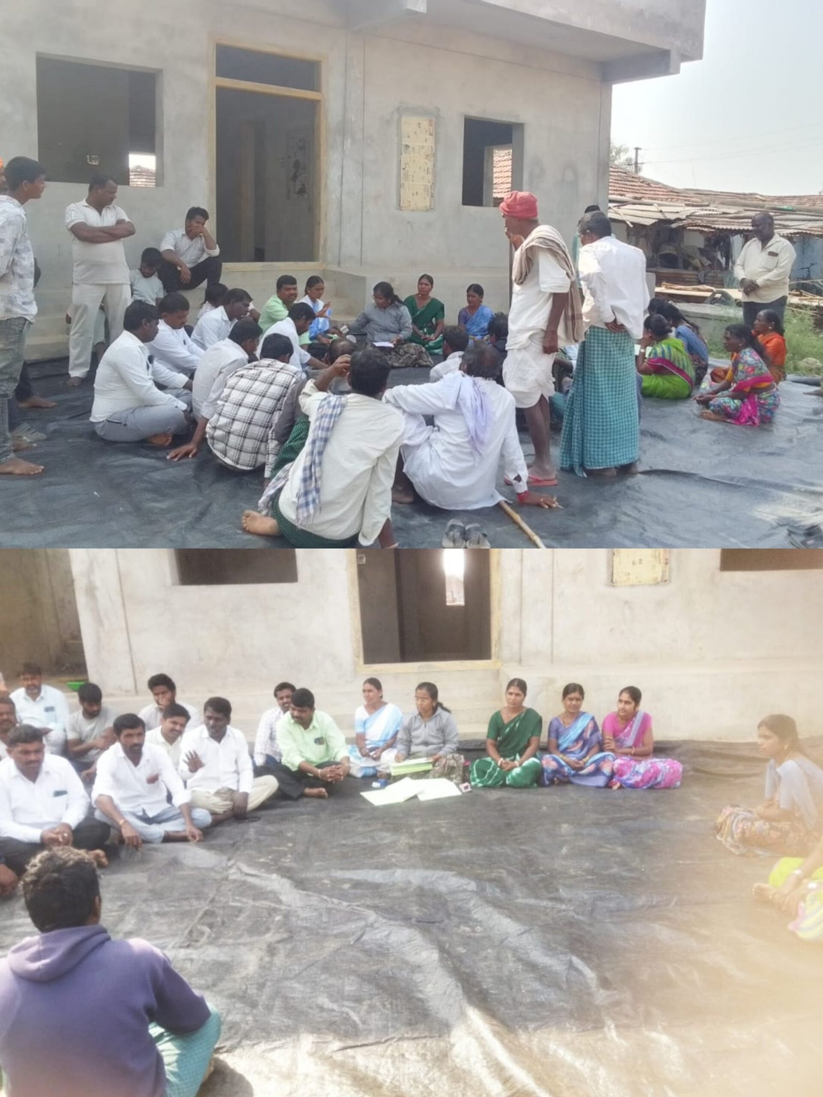 డోర్లు–కిటికీలు లేని నూతన గ్రామపంచాయతీ రోడ్డు పైనే గ్రామసభ నిర్వహణ