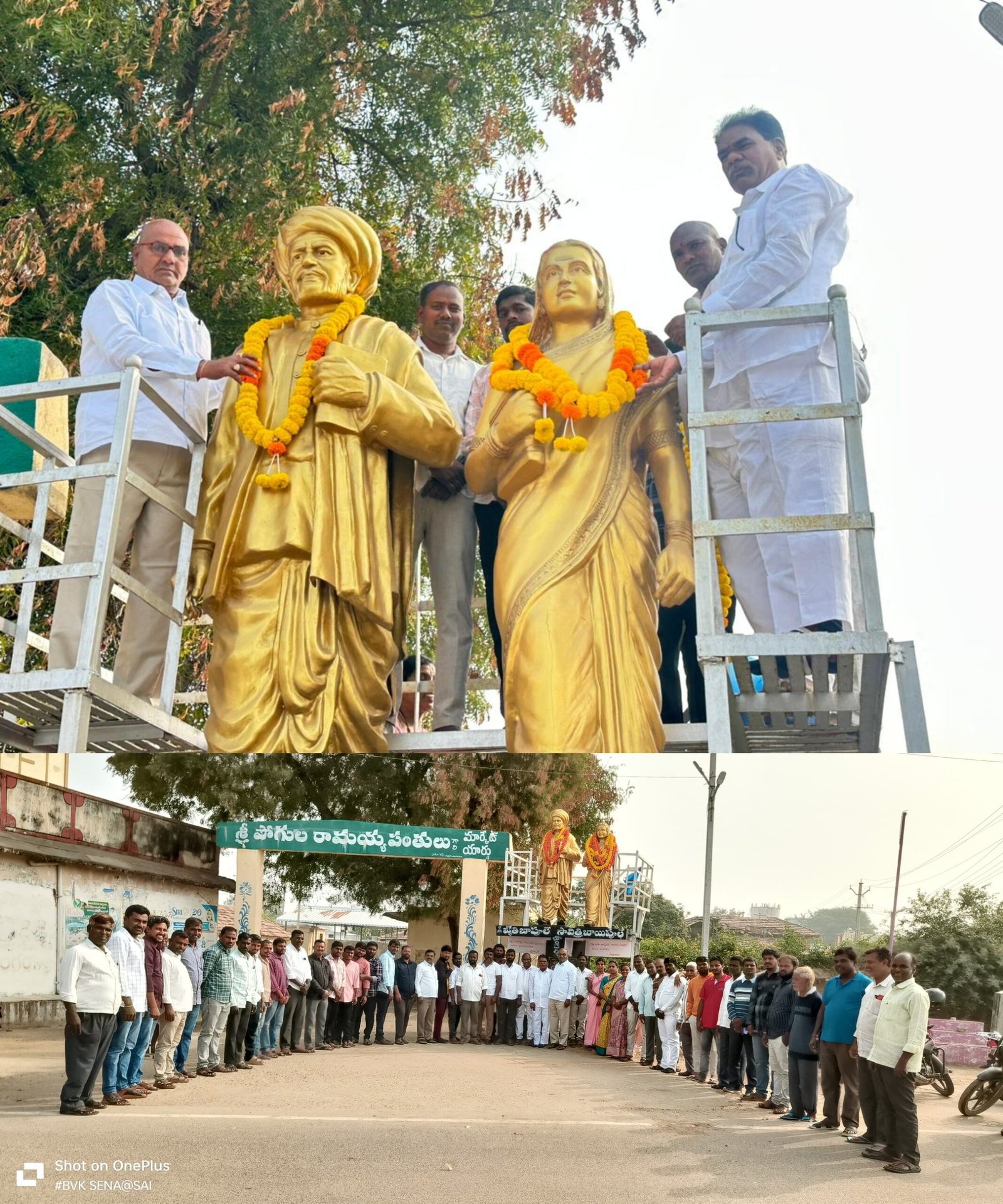 భారతదేశ తొలి మహిళా ఉపాధ్యాయురాలు, చదువుల తల్లి, మహోన్నత సంఘ సంస్కర్త సావిత్రిబాయి పూలే జయంతిని అక్బర్పేట్ భూంపల్లి మండలం భూంపల్లి గ్రామంలో ఘనంగా నిర్వహించారు.ఈ సందర్భంగా భూంపల్లి గ్రామంలో ఉన్న సావిత్రి బాయి పూలే విగ్రహానికి తెలంగాణ రాష్ట్ర ఎస్సీ, ఎస్టీ కమిషన్ చైర్మన్ గౌరవ శ్రీ బక్కి వెంకటయ్య పూలమాలలు వేసి ఘన నివాళులు అర్పించారు.అనంతరం చైర్మన్ బక్కి వెంకటయ్య మాట్లాడుతూ, సావిత్రిబాయి పూలే భారతదేశ తొలి మహిళా ఉపాధ్యాయురాలు, గొప్ప సంఘ సంస్కర్త, రచయిత్రిగా చరిత్రలో చిరస్థాయిగా నిలిచిపో యారని అన్నారు. ఆమె జయంతి సందర్భంగా జాతీయ మహిళా ఉపాధ్యాయ దినోత్సవ శుభాకాంక్షలు తెలియజేశారు. సావిత్రిబాయి పూలే కలలు కన్న ఆశయాల సాధన కోసం ప్రతి ఒక్కరూ కృషి చేయాలని పిలుపునిచ్చారు.ఆమె చూపిన మార్గదర్శకత్వంలో భారత మహిళలు విద్య, ఉద్యోగాలు, రాజకీయాలు సహా అన్ని రంగాల్లో ప్రపంచంతో పోటీ పడే స్థాయికి ఎదగాలని ఆకాంక్షించారు.ఈ కార్యక్రమంలోభూంపల్లి సర్పంచ్ రంగయ్య గారి జన్నారెడ్డి, ఉపసర్పంచ్ బాల్శెట్టి అనూష నందం, వార్డు సభ్యులు లక్ష్మి నర్సవ్వ, మాధురి, ప్రవీణ్, శ్రీకాంత్, కొండల్, అనిల్, బాలరాజు, రంజిత్, రాజు గౌడ్, శ్రీధర్, అక్బర్పేట్ సర్పంచ్ మండల కుమార్, మోతే మాజీ సర్పంచ్ శ్రీనివాస్, మాజీ ఎంపీటీసీ ఉమారాణి బాలగౌడ్, ఉల్లెంగల నవ్య–నరేష్, నాయకులు బోయ శ్రీనివాస్, బీఆర్ఎస్ పార్టీ నాయకులు, పూలే కమిటీ సభ్యులు, మాజీ ప్రజాప్రతినిధులు, కుటుంబీకులు, గ్రామస్తులు తదితరులు పెద్ద సంఖ్యలో పాల్గొన్నారు.