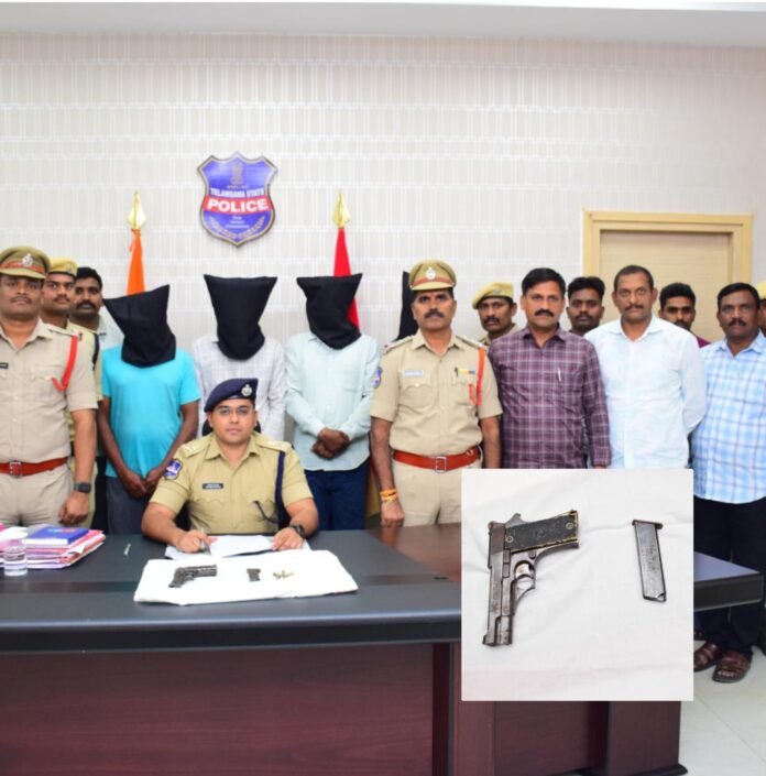 సిరిసిల్లలో ముఠా అరెస్ట్: 9mm పిస్టల్, 5 సజీవ తూటాలు స్వాధీనం