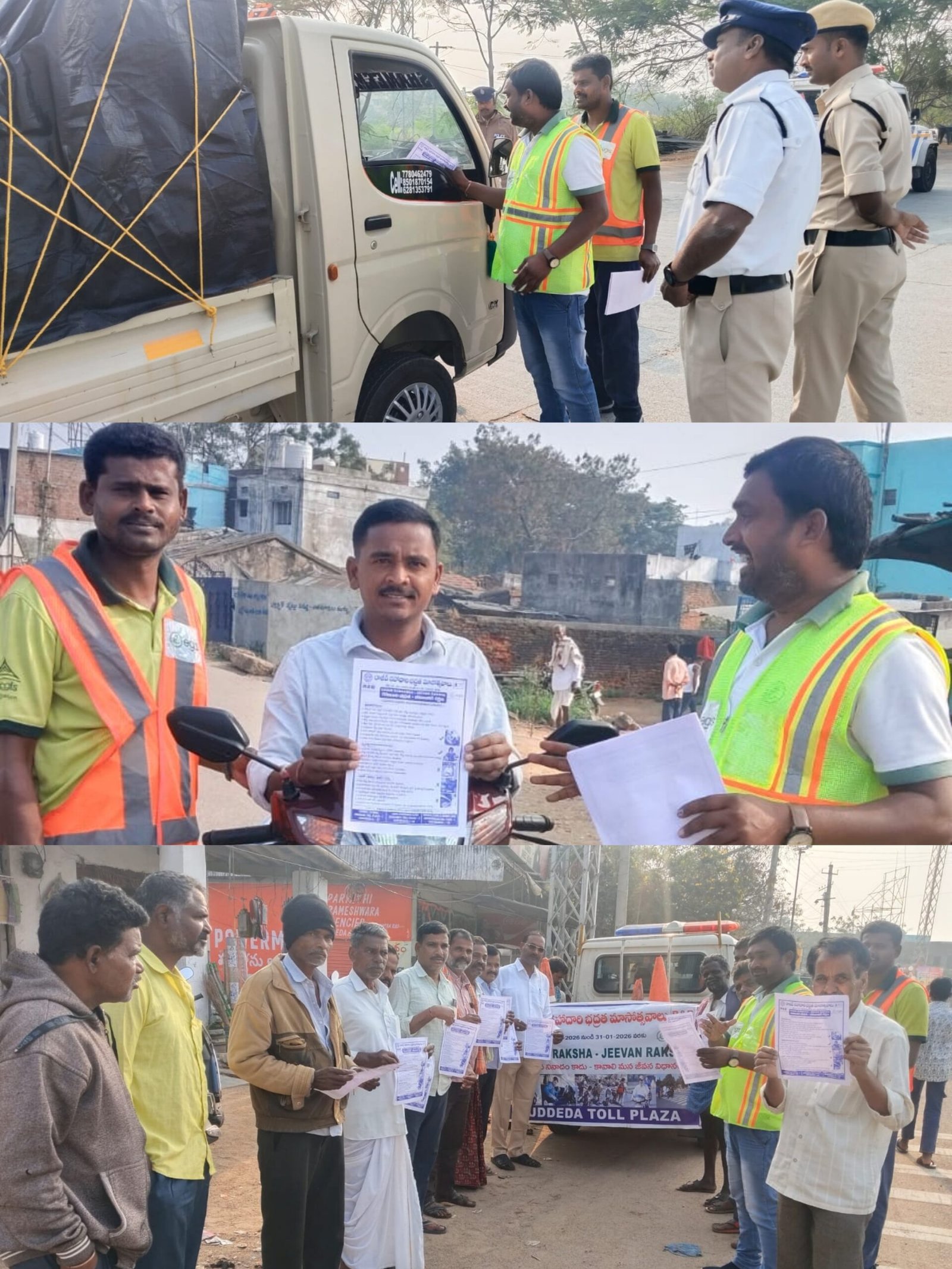 రాజీవ్ రహదారి భద్రత మాసోత్సవాల్లో భాగంగా కొండపాక మండలం దుద్దెడ గ్రామంలో ఆదివారం రోడ్డు భద్రతపై అవగాహన కార్యక్రమం నిర్వహించారు. దుద్దెడ టోల్ ప్లాజా ఈజీఎస్ మేనేజర్ అశోక్ రెడ్డి ఆధ్వర్యంలో జరిగిన ఈ కార్యక్రమంలో రోడ్డు ప్రమాదాల నివారణపై ప్రజలకు అవగాహన కల్పించారు.ఈ సందర్భంగా ఈజీఎస్ రూట్ పెట్రోలింగ్ బృందం మాట్లాడుతూ ప్రతి ఒక్కరూ ట్రాఫిక్ నిబంధనలు తప్పనిసరిగా పాటించాలని సూచించారు. ద్విచక్ర వాహనదారులు హెల్మెట్, నాలుగు చక్రాల వాహనదారులు సీట్బెల్ట్ ధరించాలని తెలిపారు. డ్రైవింగ్ సమయంలో మొబైల్ ఫోన్ వినియోగించరాదని, మైనర్లకు వాహనాలు ఇవ్వకూడదని హెచ్చరించారు.మద్యం సేవించి వాహనాలు నడపడం, అతివేగం, రాంగ్ రూట్లో ప్రయాణించడం వల్లే ఎక్కువగా రోడ్డు ప్రమాదాలు జరుగుతున్నాయని పేర్కొన్నారు. ఆటోలు, ప్రైవేట్ వాహనాలు నిర్ణీత పరిమితికి మించిప్రయాణికులను ఎక్కించరాదన్నారు. విద్యార్థులు కూడా ట్రాఫిక్ నియమాలను పాటిస్తూ తమ కుటుంబ సభ్యులకు రహదారి భద్రతపై అవగాహన కల్పించాలని సూచించారు.ఈ కార్యక్రమంలో పోలీస్ సిబ్బంది, ఈజీఎస్ రూట్ పెట్రోలింగ్ ఆర్పీఓ కుమార్, హెల్పర్ శ్రీనివాస్, పైలట్ హరీష్, గ్రామ పెద్దలు, యువకులు తదితరులు పాల్గొన్నారు.