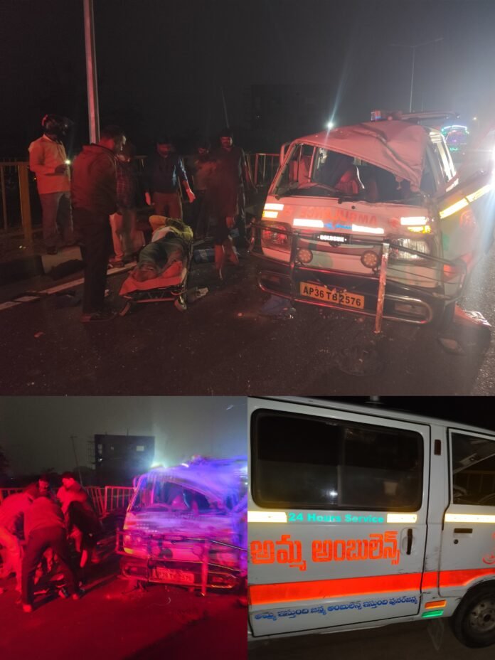 ఇరుకోడులో అమ్మ అంబులెన్స్ ఘోర ప్రమాదం